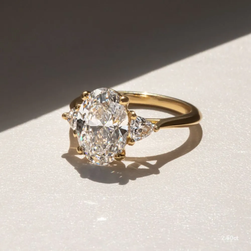 Oval diamonds easily mix with pears, marquises, and baguettes allowing customers to customize every design they create. The oval diamond looks stunning across all platinum yellow gold and rose gold setting types.